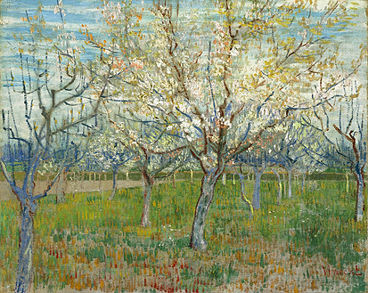 some of his other works possess less cheery, or even somber qualities, his paintings of spring blossoms bring to mind happy